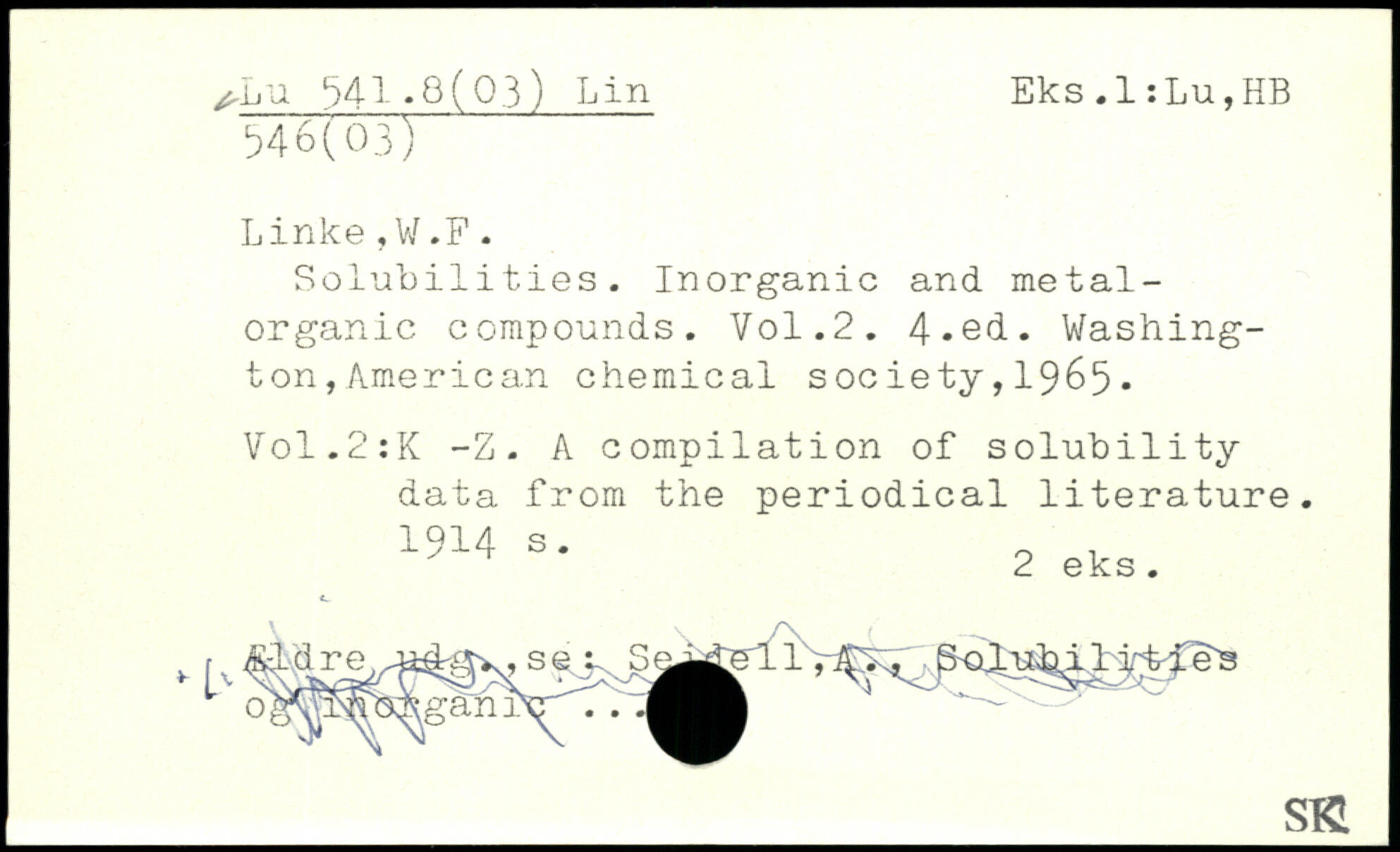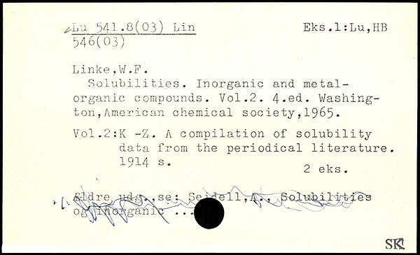 Solubilities. Inorganic and metal-organic compounds.