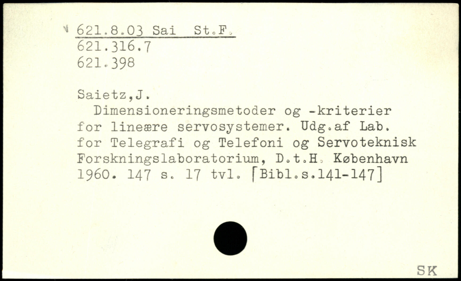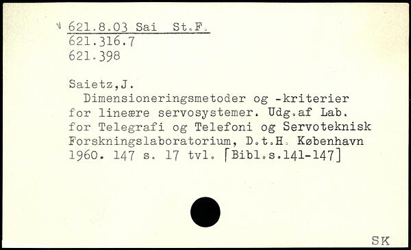 Dimensioneringsmetoder og -kriterier for lineære servosystemer. Udg.af Lab. for Telegrafi og Telefoni og Servoteknisk Forskningslaboratorium, L.t.H