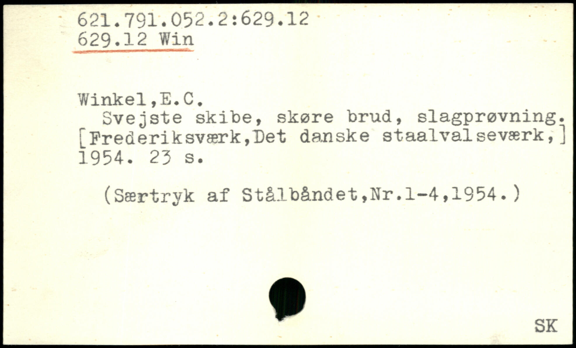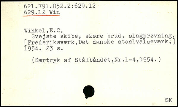 Svejste skibe, skøre brud, slagprøvning. [Frederiksværk,Det danske staalval seværk,] 1954.