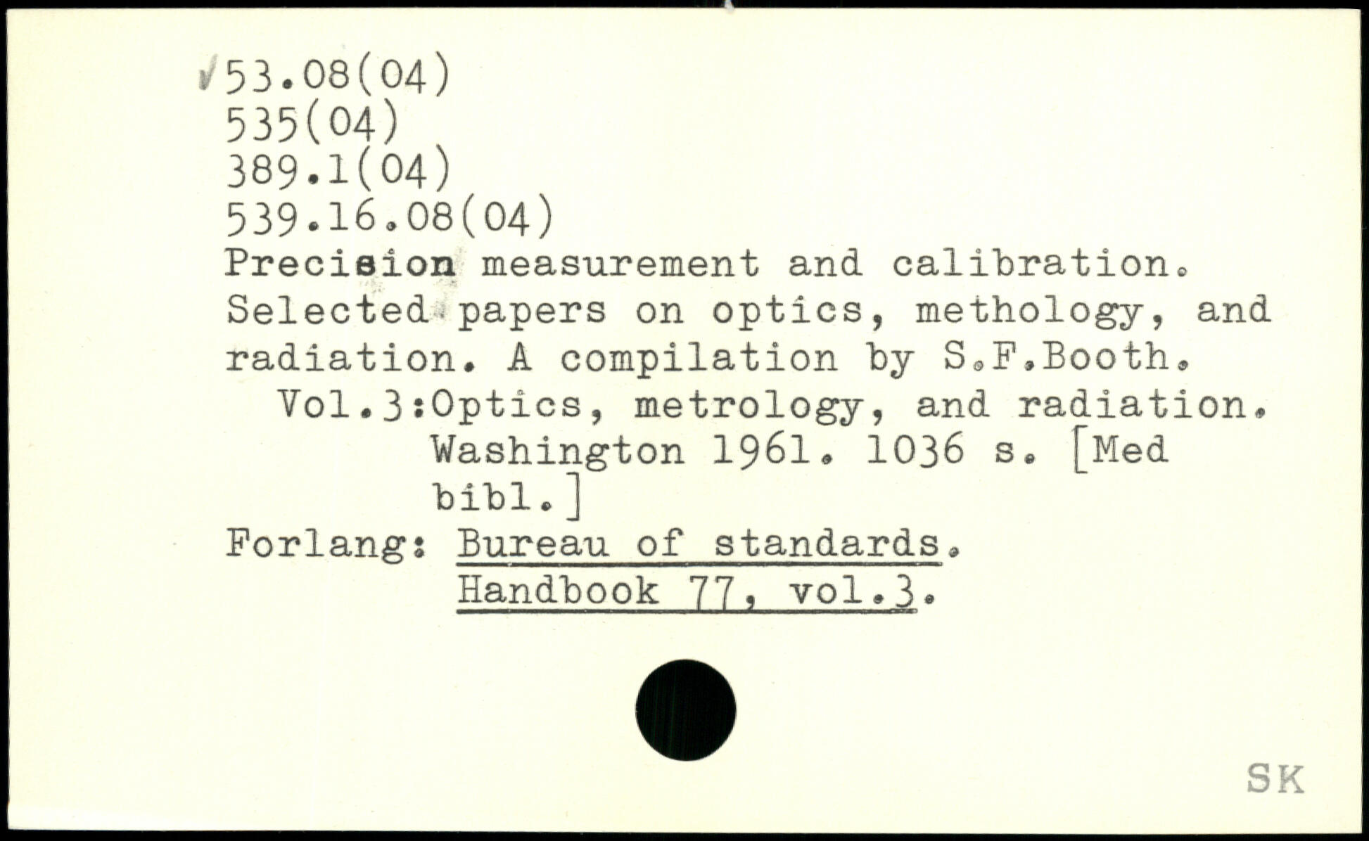 Precision measurement and calibration. Selected■papers on optics, methology, and radiation. A compilation by S.F,Booth.
