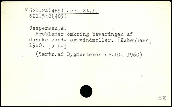 Problemer omkring bevaringen af danske vand- og vindmøller. [København! 1960. [