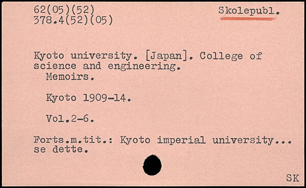 Kyoto university, [japan]. College of science and engineering. Memoirs. Kyoto 1909-14.