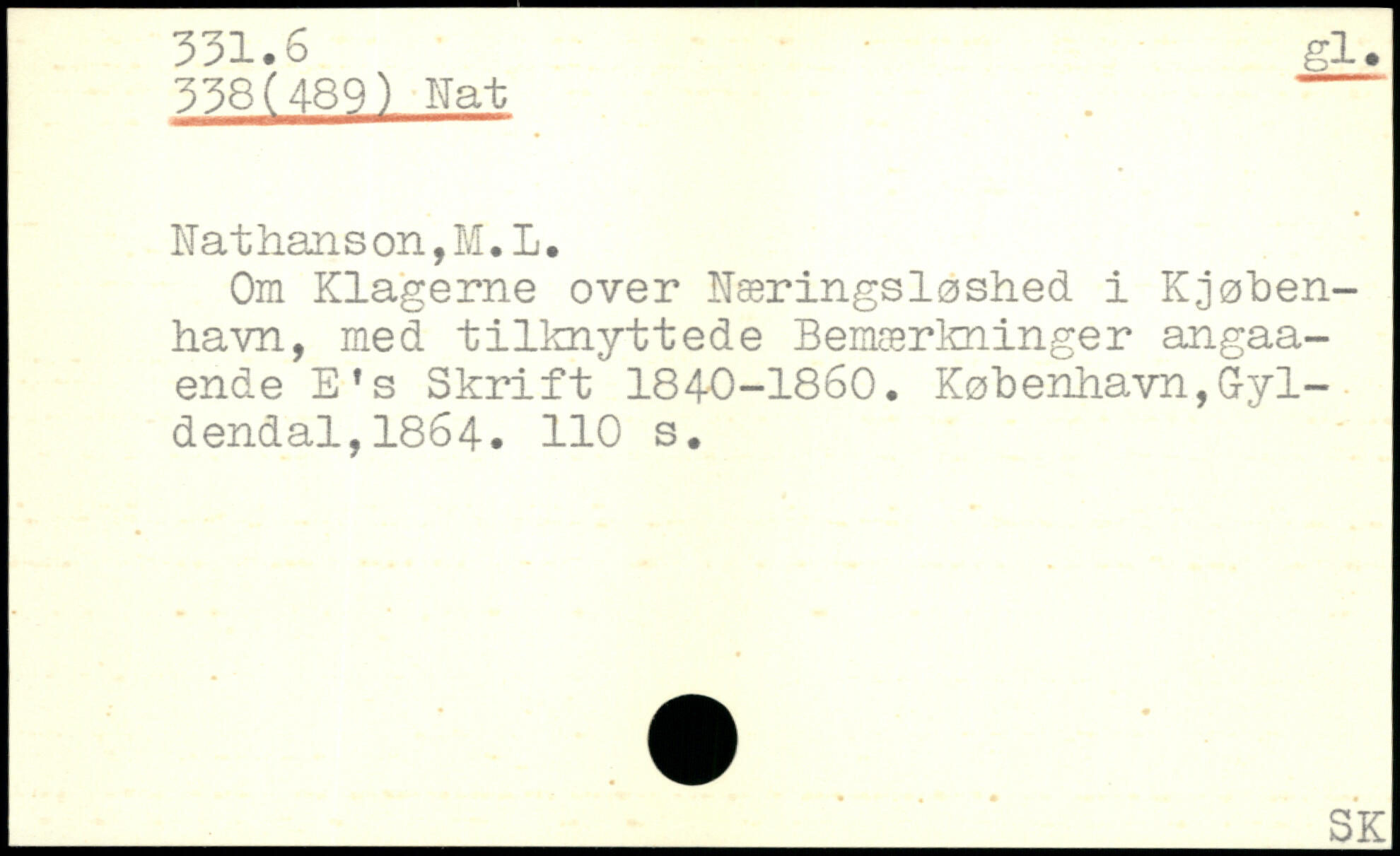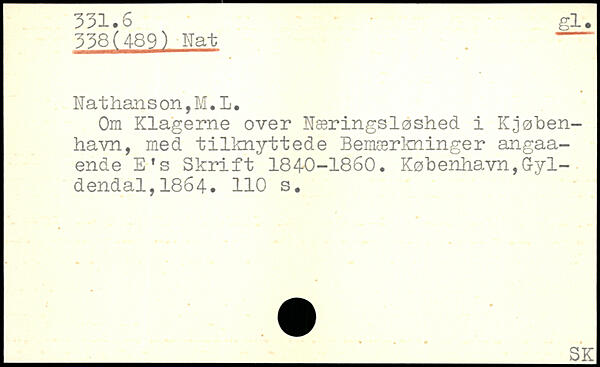 Nat han s on, M. L. Om Klagerne over Næringsløshed i Kjøben-havn, med tilknyttede Bemærkninger angaa-ende E’s Skrift 1840-1860.