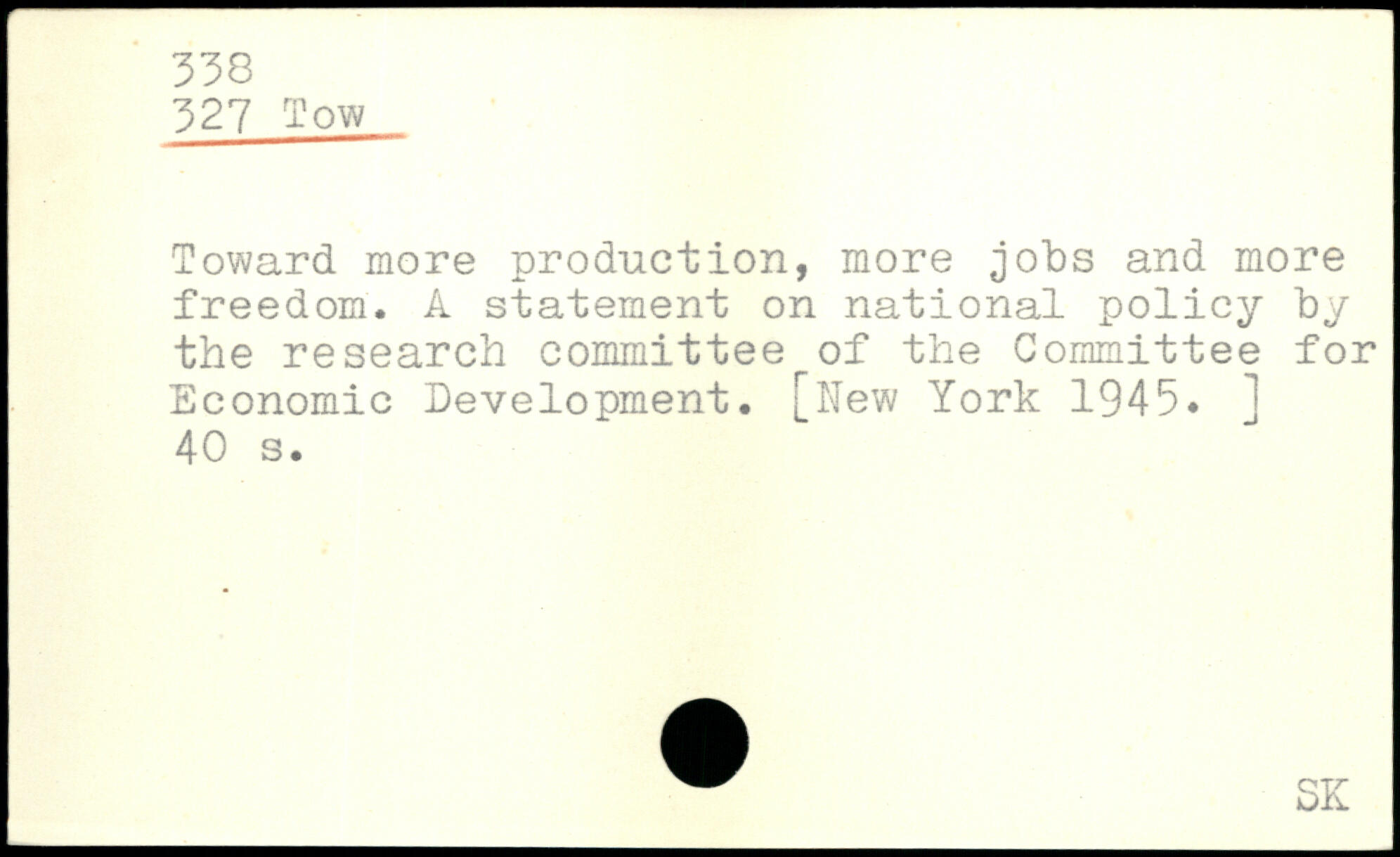 Toward more production, more jobs and more freedom. A statement on national policy by the research committee of the Committee for Economic Development.