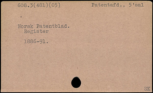 Norsk Patentblad. Register 1886-91. _^_SK