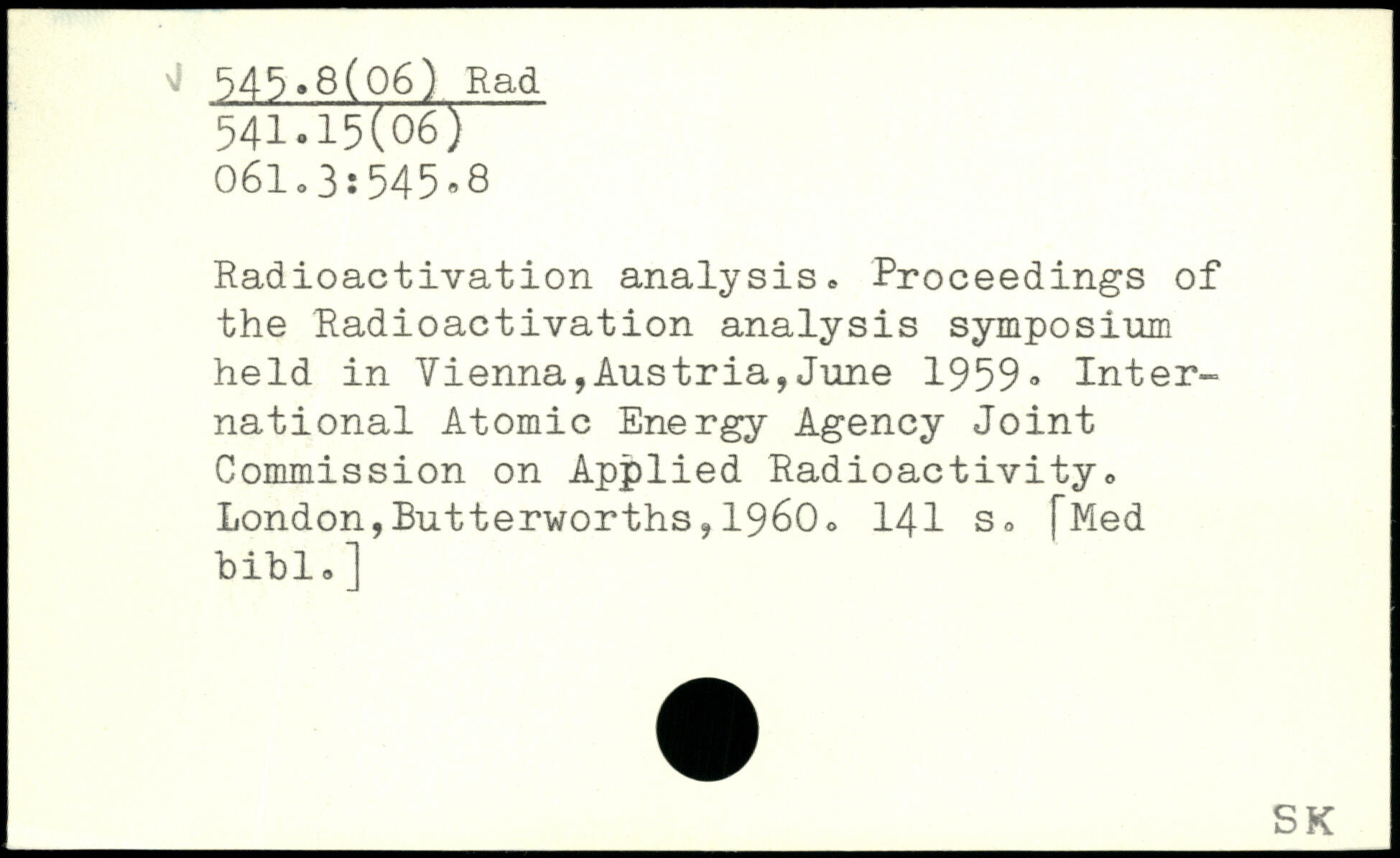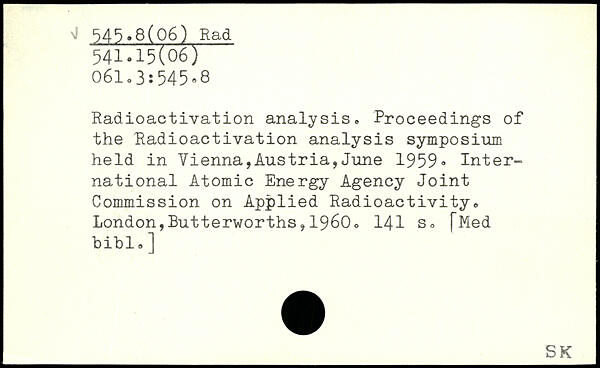 Radioactivation analysis, Proceedings of the Radioactivation analysis symposium held in Vienna,Austria,June 1959, International Atomic Energy Agency Joint