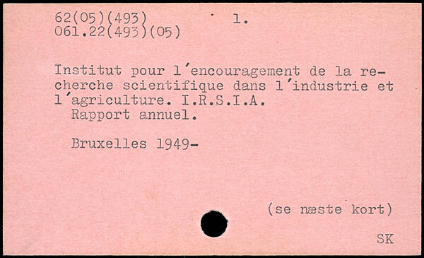 Institut pour l'encouragement de la recherche scientifique dans l'industrie et l'agriculture. I.R.S.I.A. Rapport annuel.