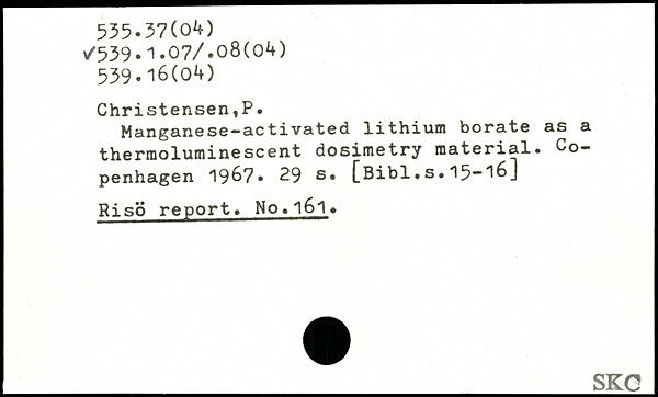 Chri stensen,P. Manganese-activated lithium borate as a thermoluminescent dosimetry material.