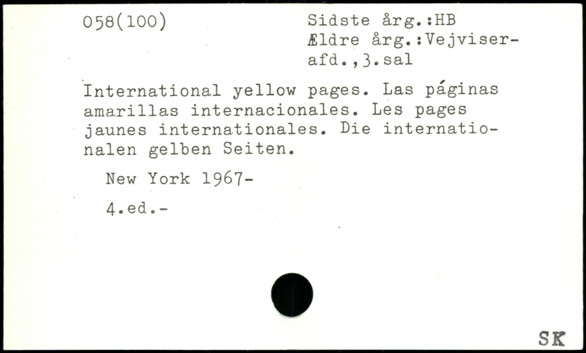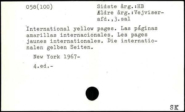 Ældre årg.:Vejviser-afd.,3, sal International yellow pages. Las paginas amarillas internacionales. Les pages jaunes internationales. Die internationalen gelben Seiten.