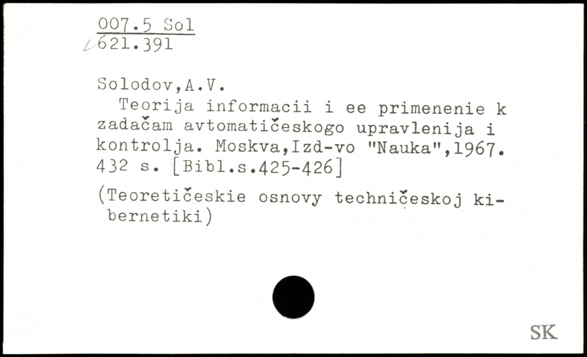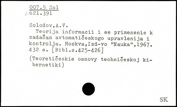Teorija informacii i ee primenenie k zadacam avtornaticeskogo upravlenija i kontrolja. Moskva,Izd-vo "Nauka",1967.