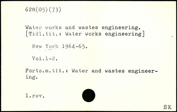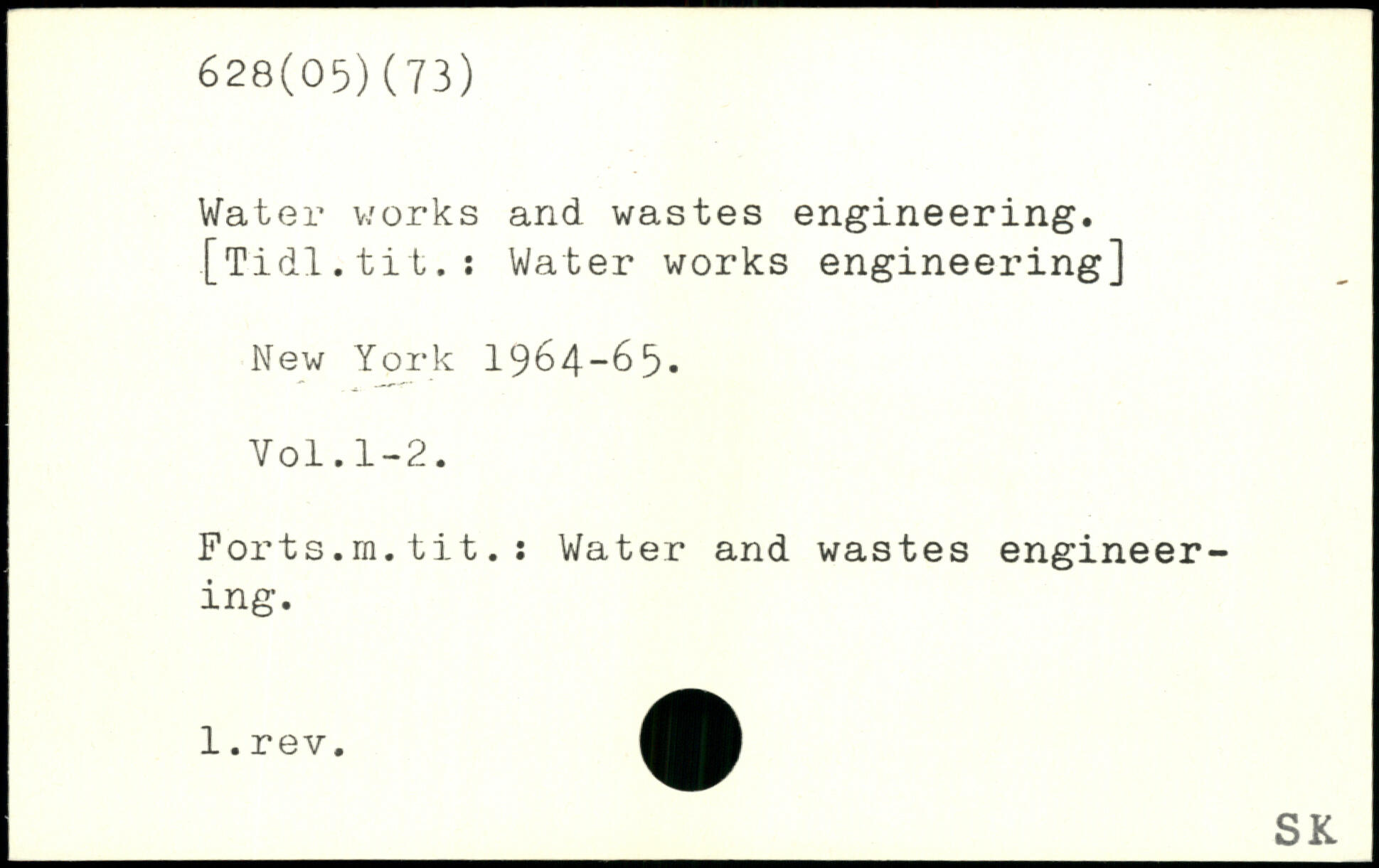 Water works and wastes engineering. [Tidl.tit.: Water works engineering]