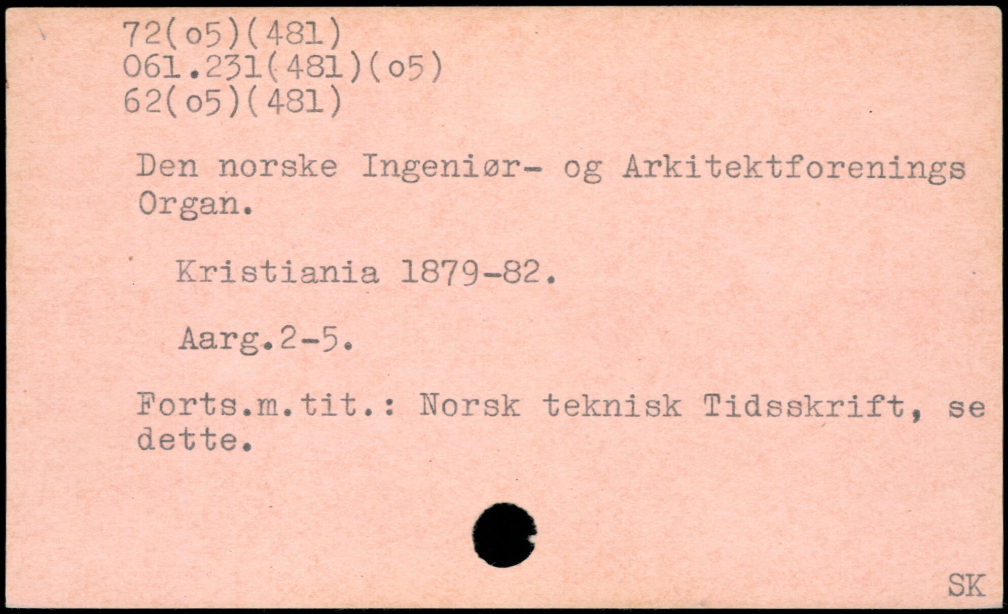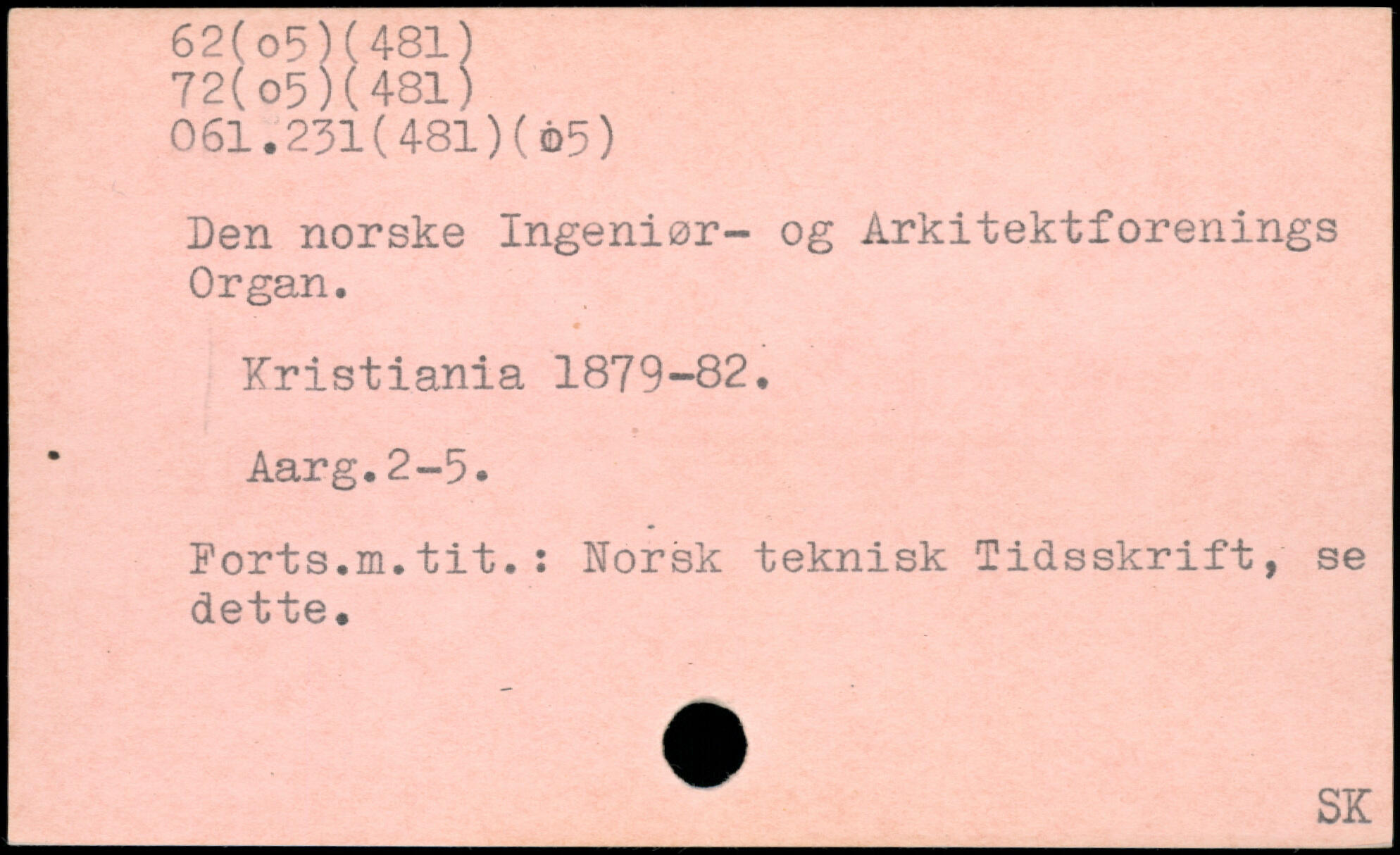 Den norske Ingeniør- og Arkitektforenings Organ. Kristiania 1879-82. . Aarg.2-5. Ports.m.tit.: Norsk teknisk Tidsskrift, se dette.
