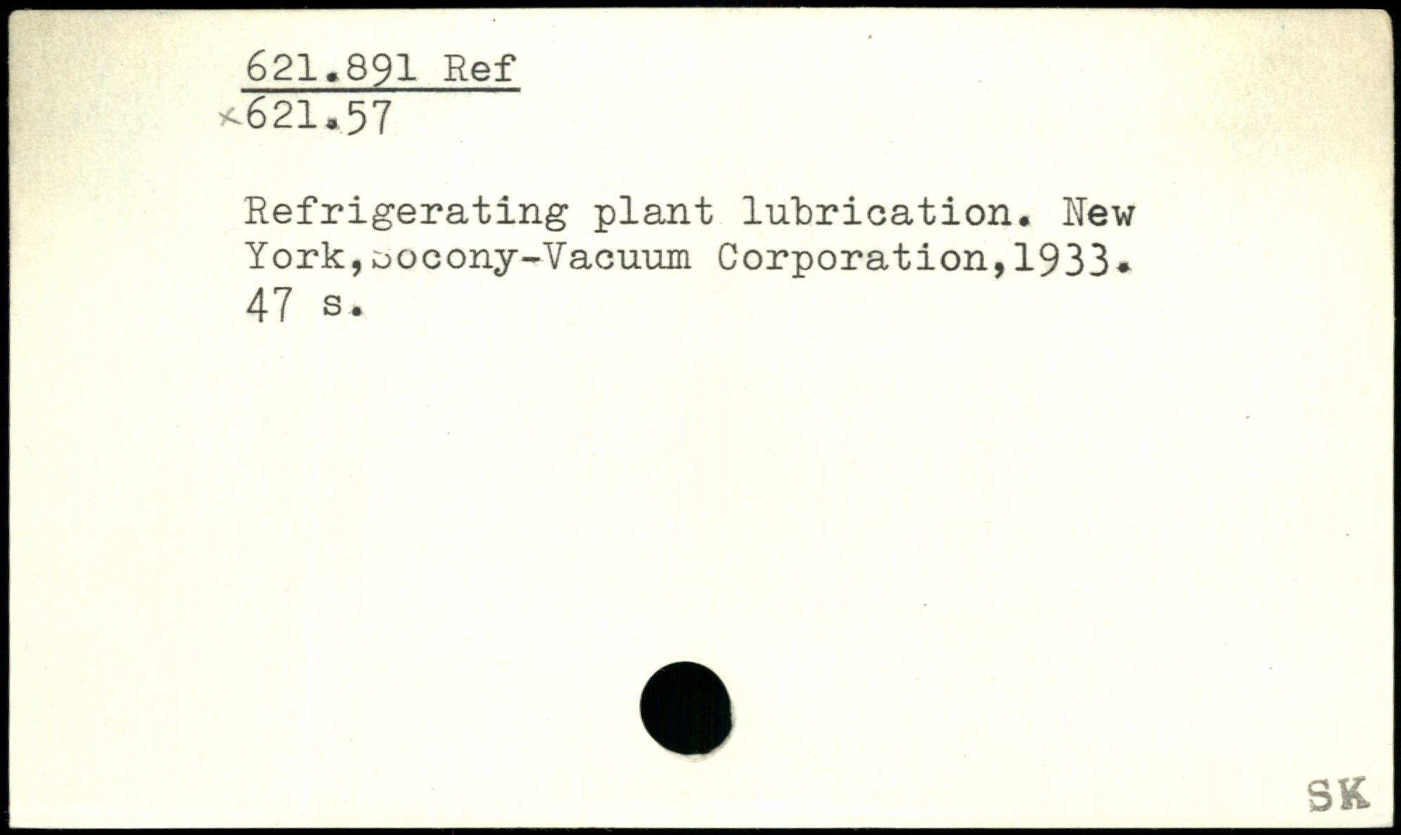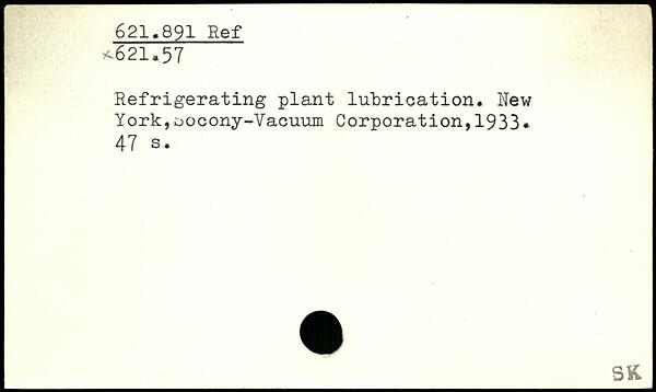 Refrigerating plant lubrication. New York,docony-Vacuum Corporation,1933.