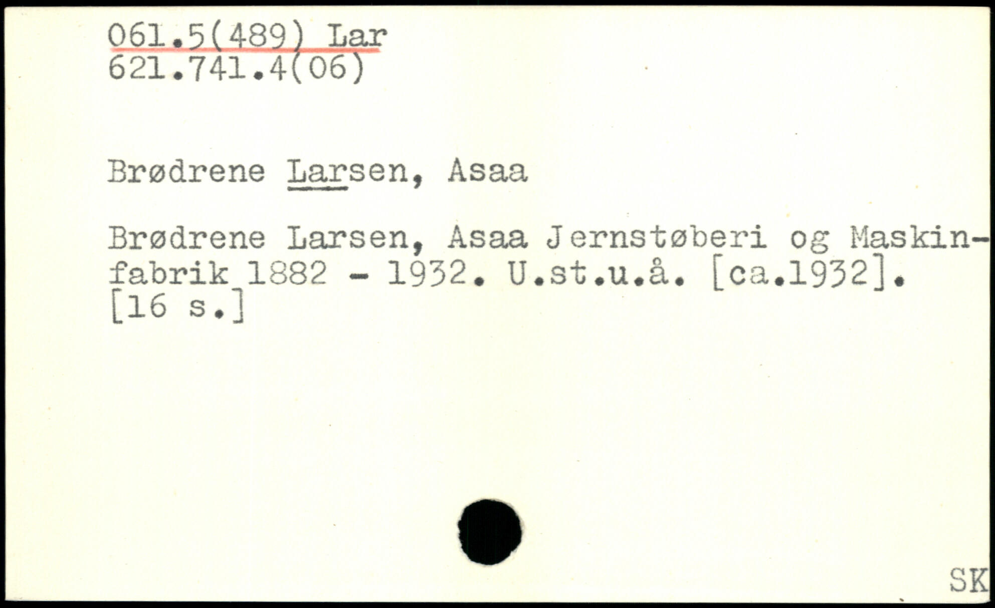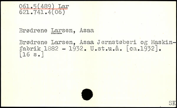 Brødrene Larsen, Asaa Brødrene Larsen, Asaa Jernstøberi og Maskin-fabrik 1882 - 1932. U.st.u.å. [ca.1932], _ SK
