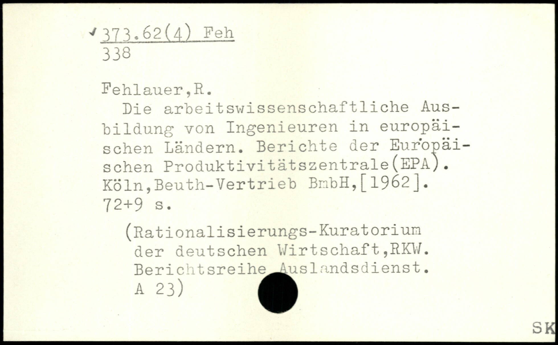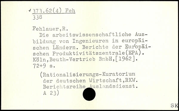 hie arbeitswissenschaftliche Ausbildung von Ingenieuren in europäischen Ländern. Berichte der Europäischen Produktivitätszentrale(EPA;.