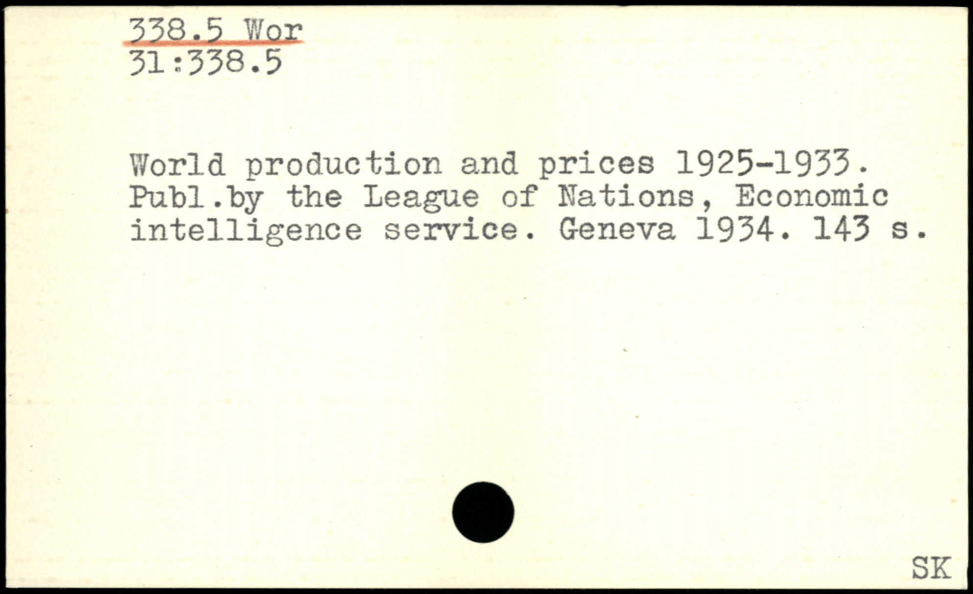 V/orld production and prices 1925-1933.