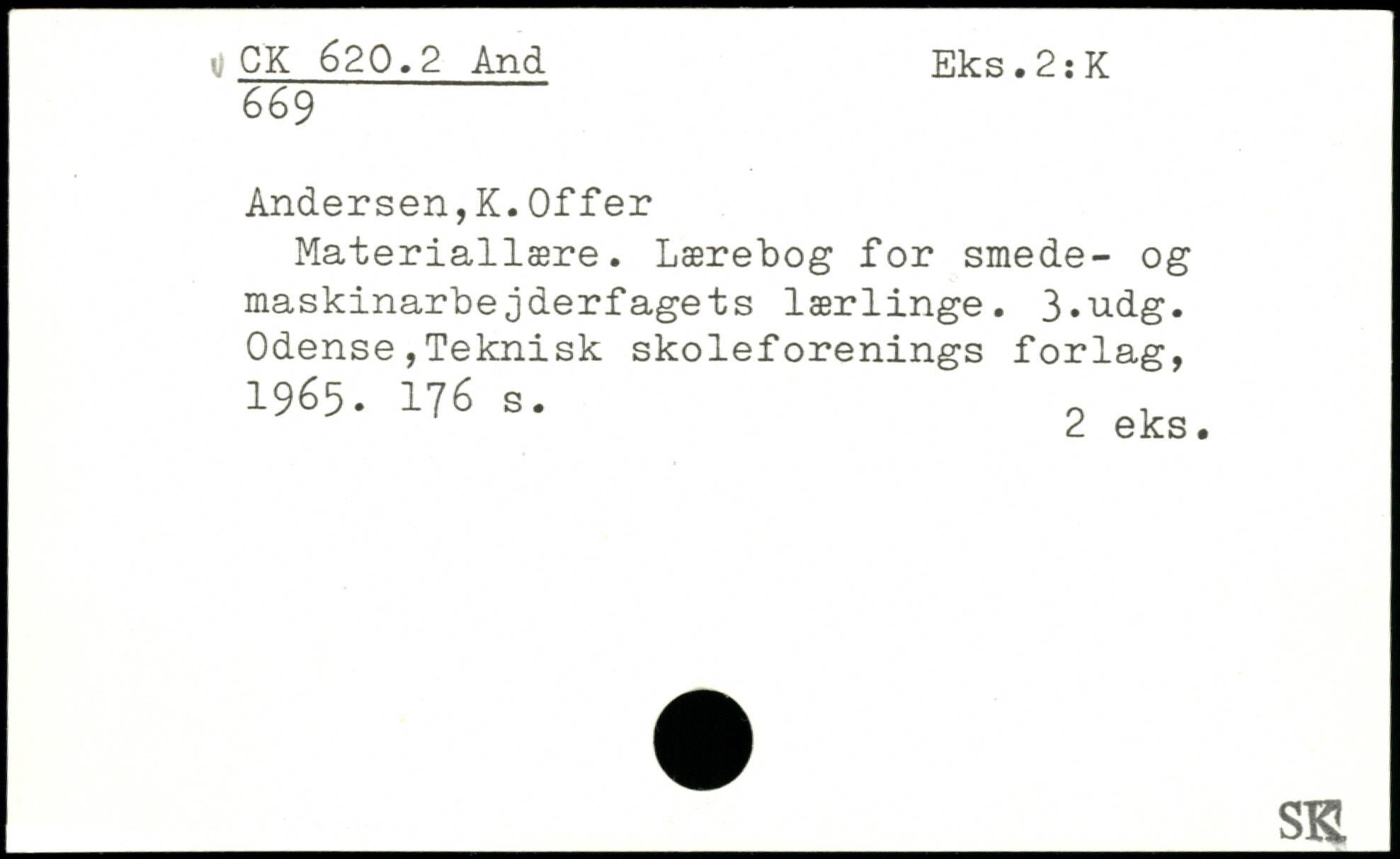 Andersen,K.Offer Materiallære. Lærebog for smede- og maskinarbejderfagets lærlinge. 3,ndg.
