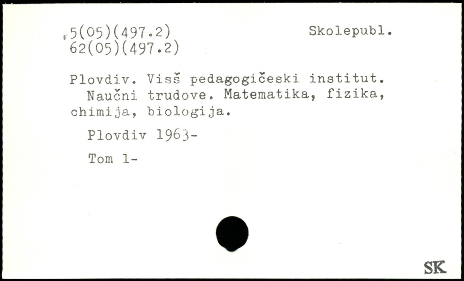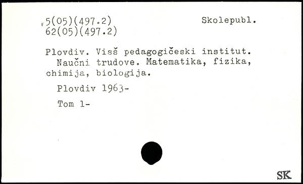 Plovdiv. Viss pedagogiceski institut. Naucni trudove. Matematika, fizika, chimija, biologija. Plovdiv 1963- Tom 1-