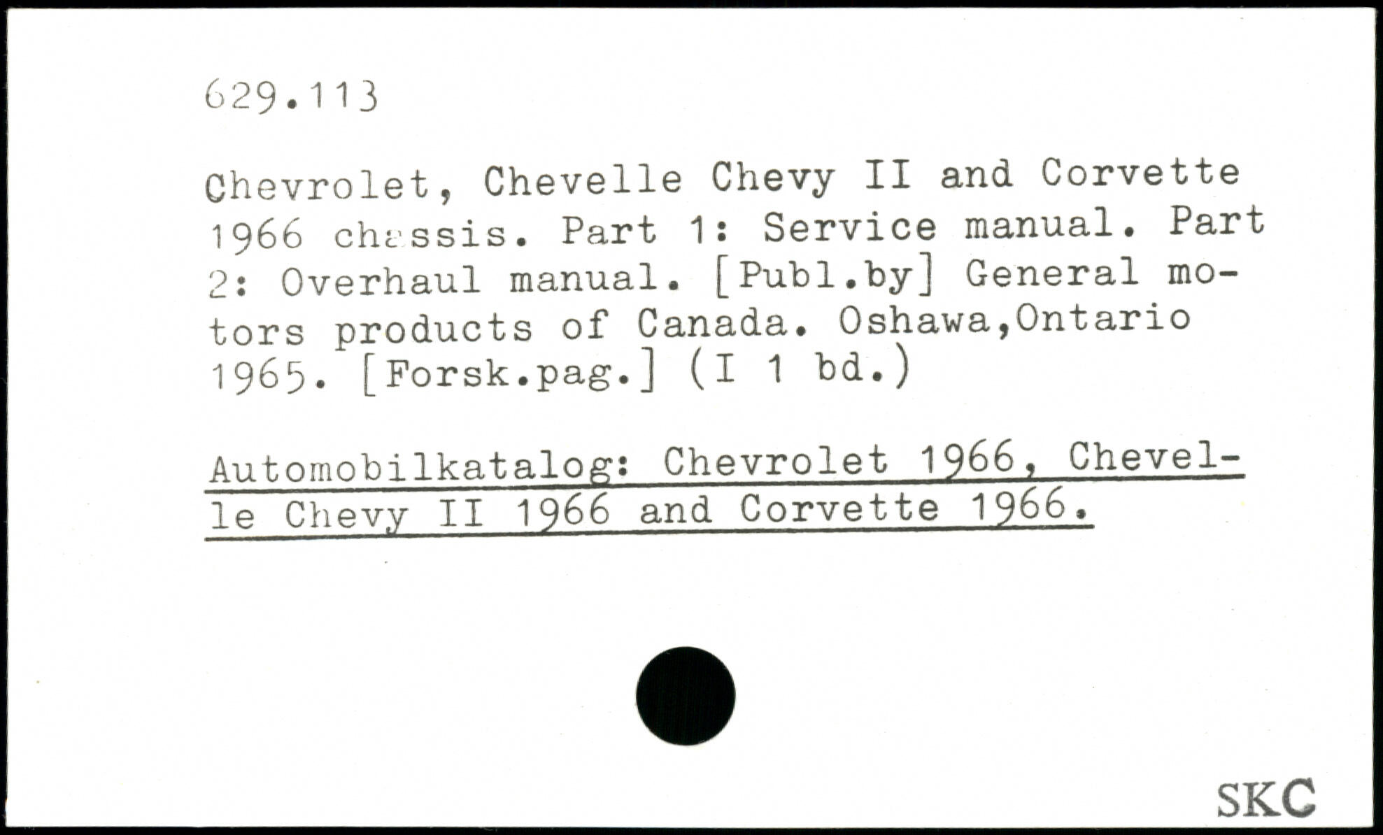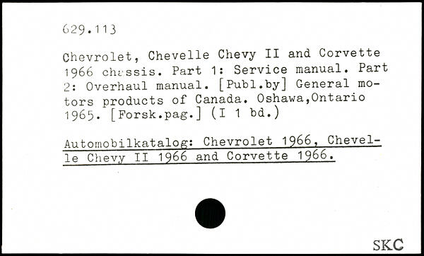 Chevrolet, Chevelle Chevy II and Corvette 1966 chassis. Part 1s Service manual. Part 2: Overhaul manual.