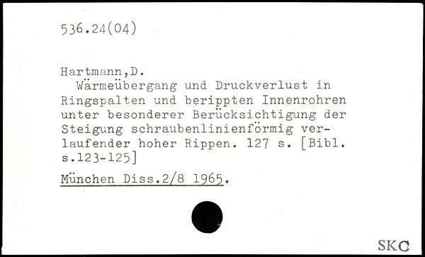 Wärmeübergang und Druckverlust in Ringspalten und berippten Innenrohren unter besonderer Berücksichtigung der Steigung schraubenlinienformig verlaufender hoher Rippen.