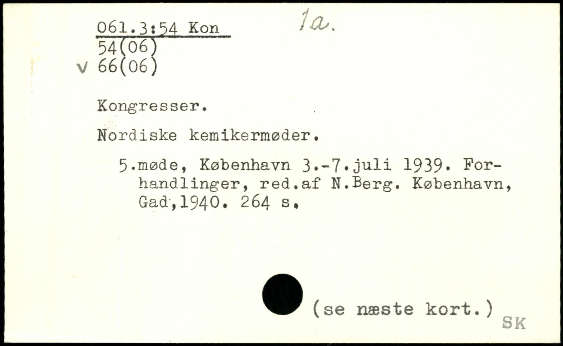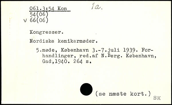 Nordiske kemikermøder, 5.møde, København 3.-7,juli 1939, Forhandlinger, red,af N.Berg.