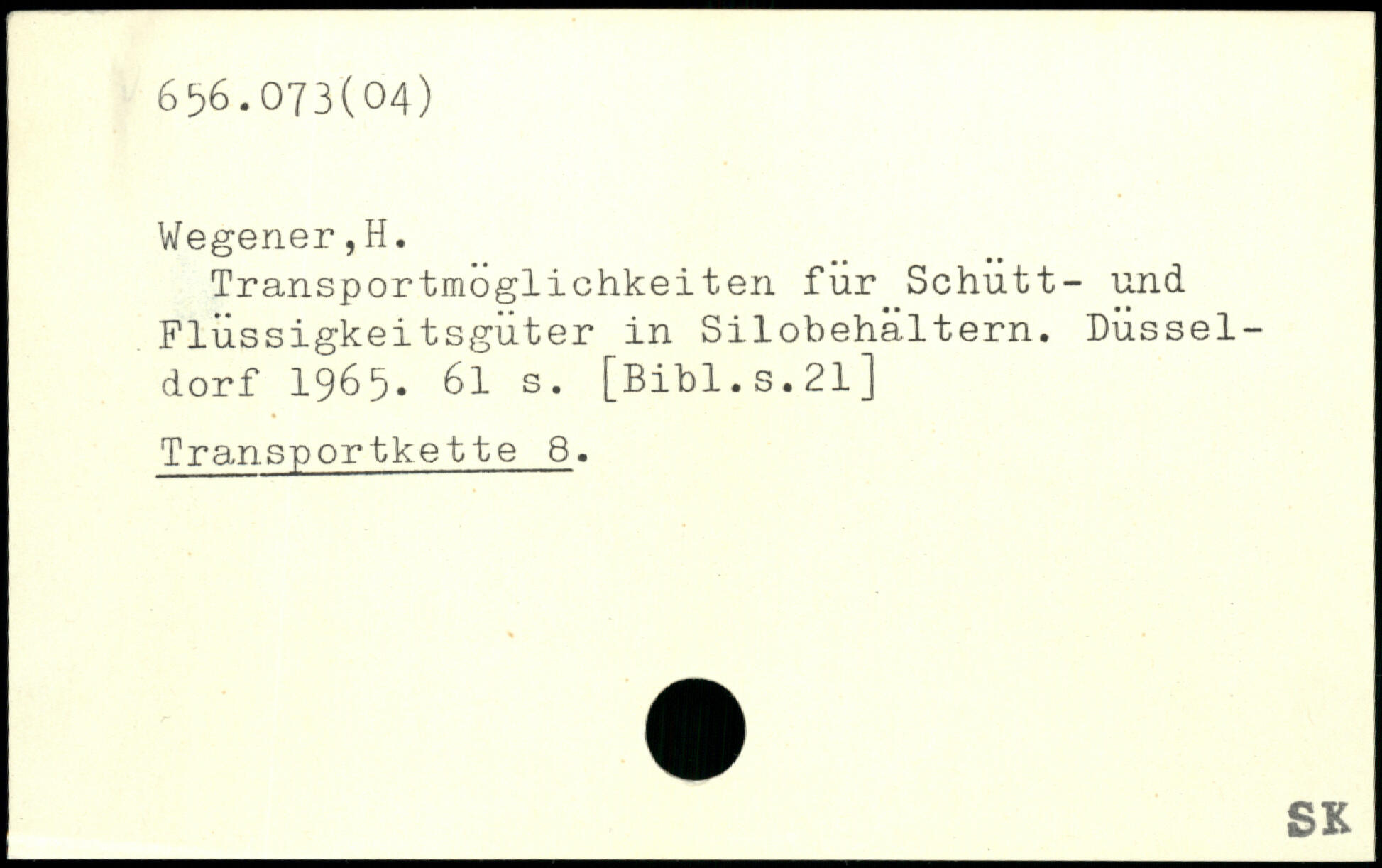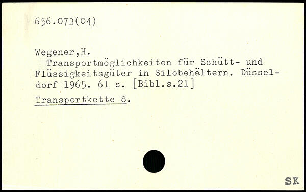Transportmoglichkeiten für Schutt- und Flüssigkeitsgüter in Silobehältern. Düsseldorf 1965.