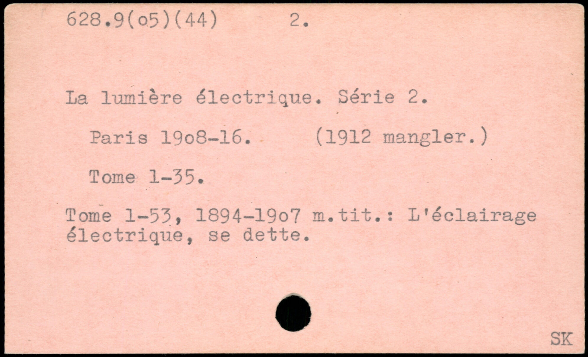 La lumière électrique. Série 2. Paris 19o8-l6. (1912 mangler.) Tome 1-35. Tome 1-53, 1894-19o7 m.tit.: L’éclairage électrique, se dette.