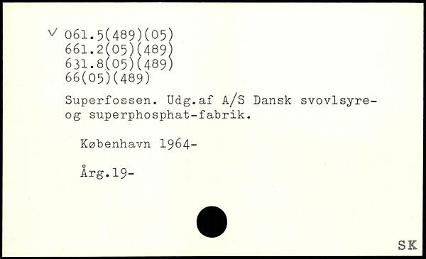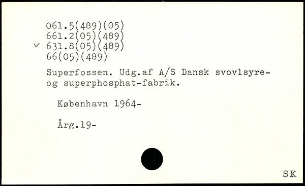 Superfossen. Udg.af A/S Dansk svovlsyre-og superphosphat-fabrik.