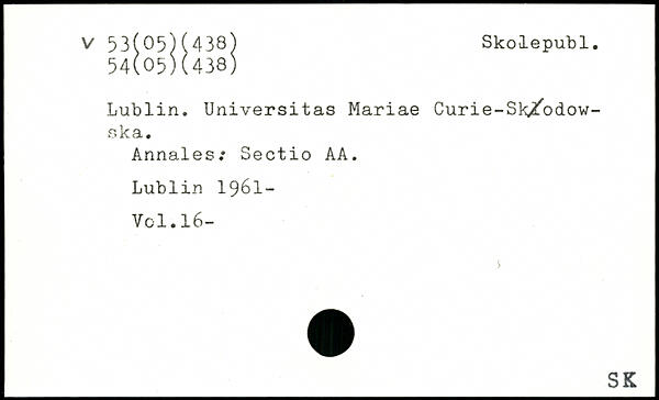 Lublin. Universitas Mariae Curie-Sk^odow-ska. Annales/ Sectio AA. Lublin 1961-