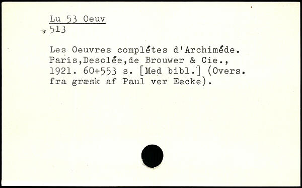 Les Oeuvres complètes d’Archimède. Paris ,!Desclèe, de Brouwer & Cie. , 1921.