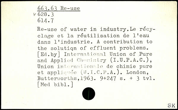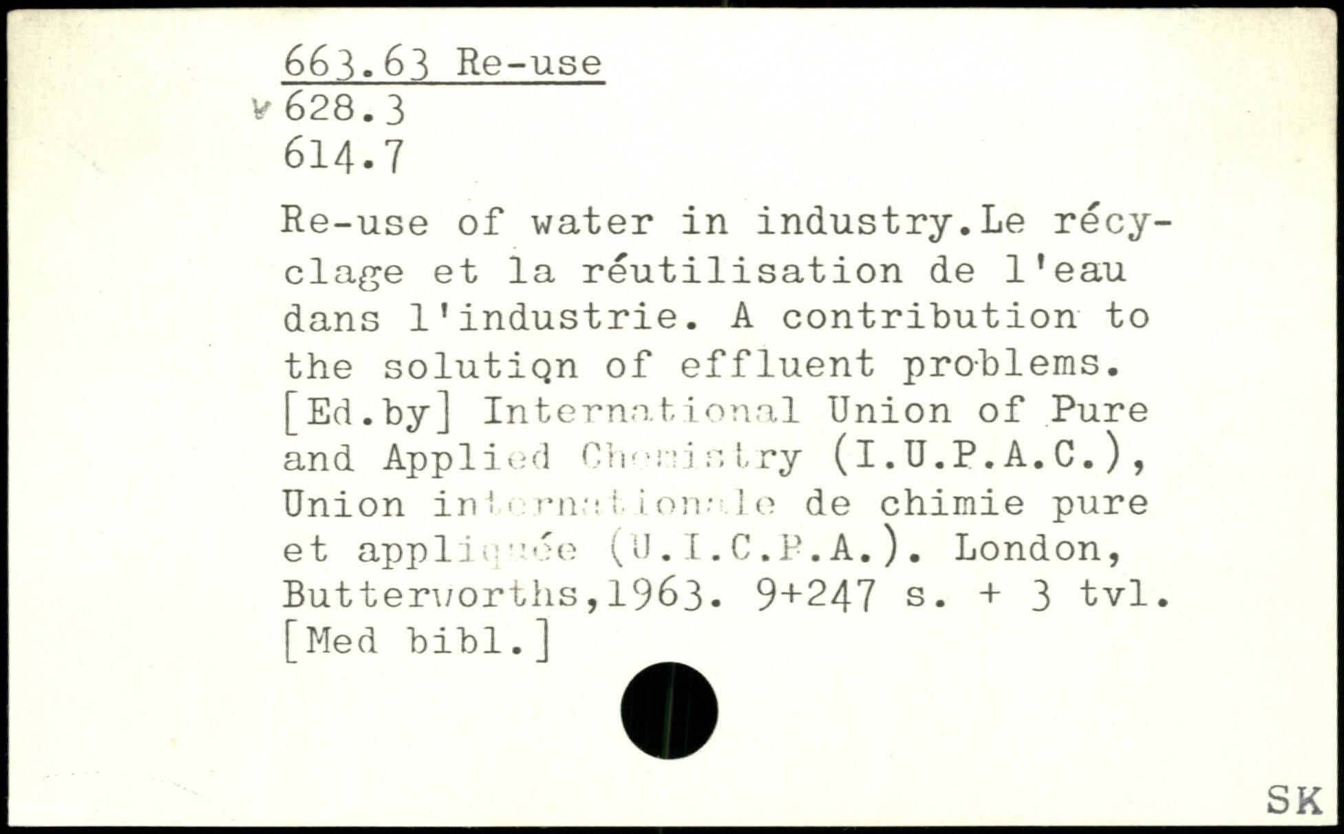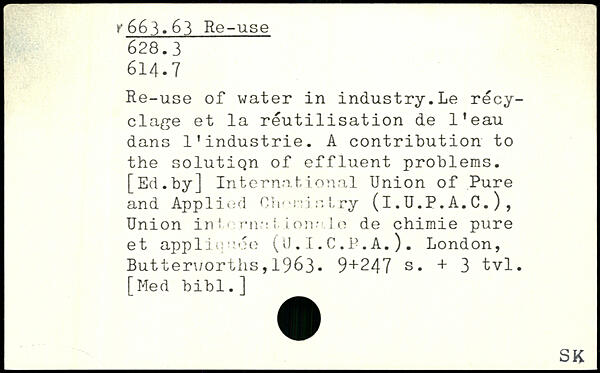 Re-use of water in industry.Le recyclage et la réutilisation de l'eau dans l'industrie. A contribution to the solutiQn of effluent problems.