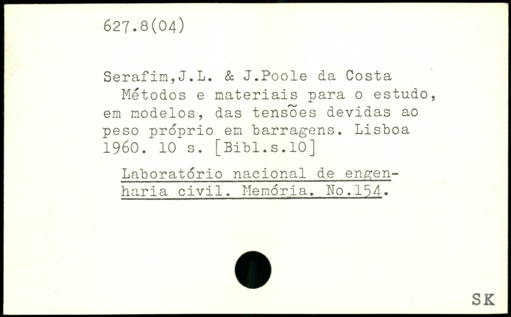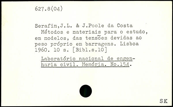 Serafim,J.L. & J.Poole da Costa Metodos e materiais para o estudo, em modelos, das tensoes devidas ao peso proprio em barragens. Lisboa 1960.