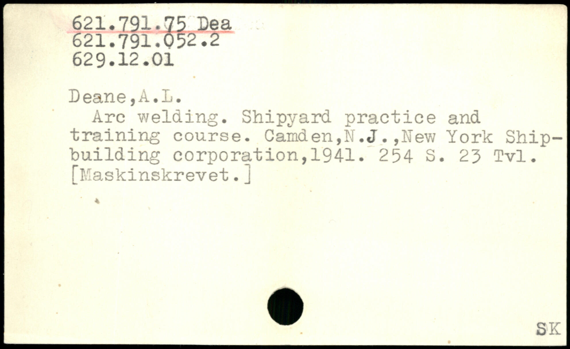 Arc welding. Shipyard practice and training course. Camden,N.J. ,kTew York Shipbuilding corporation,1941.