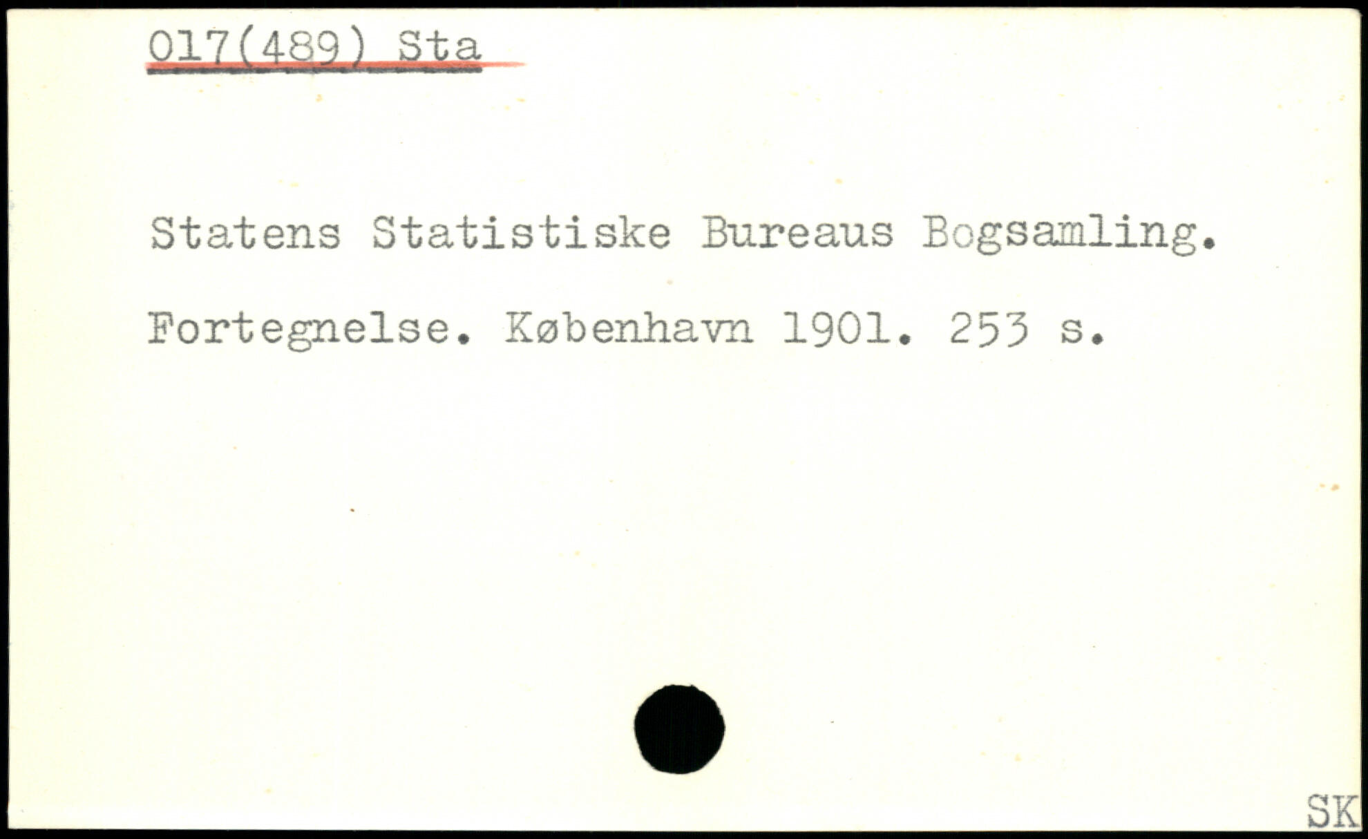 Statens Statistiske Bureaus Bogsamling. Fortegnelse.
