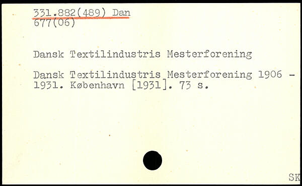 bV 7CVZ1 - Dansk Textilindustris Mesterforening Dansk Textilindustris Mesterforening 1906 -1931.