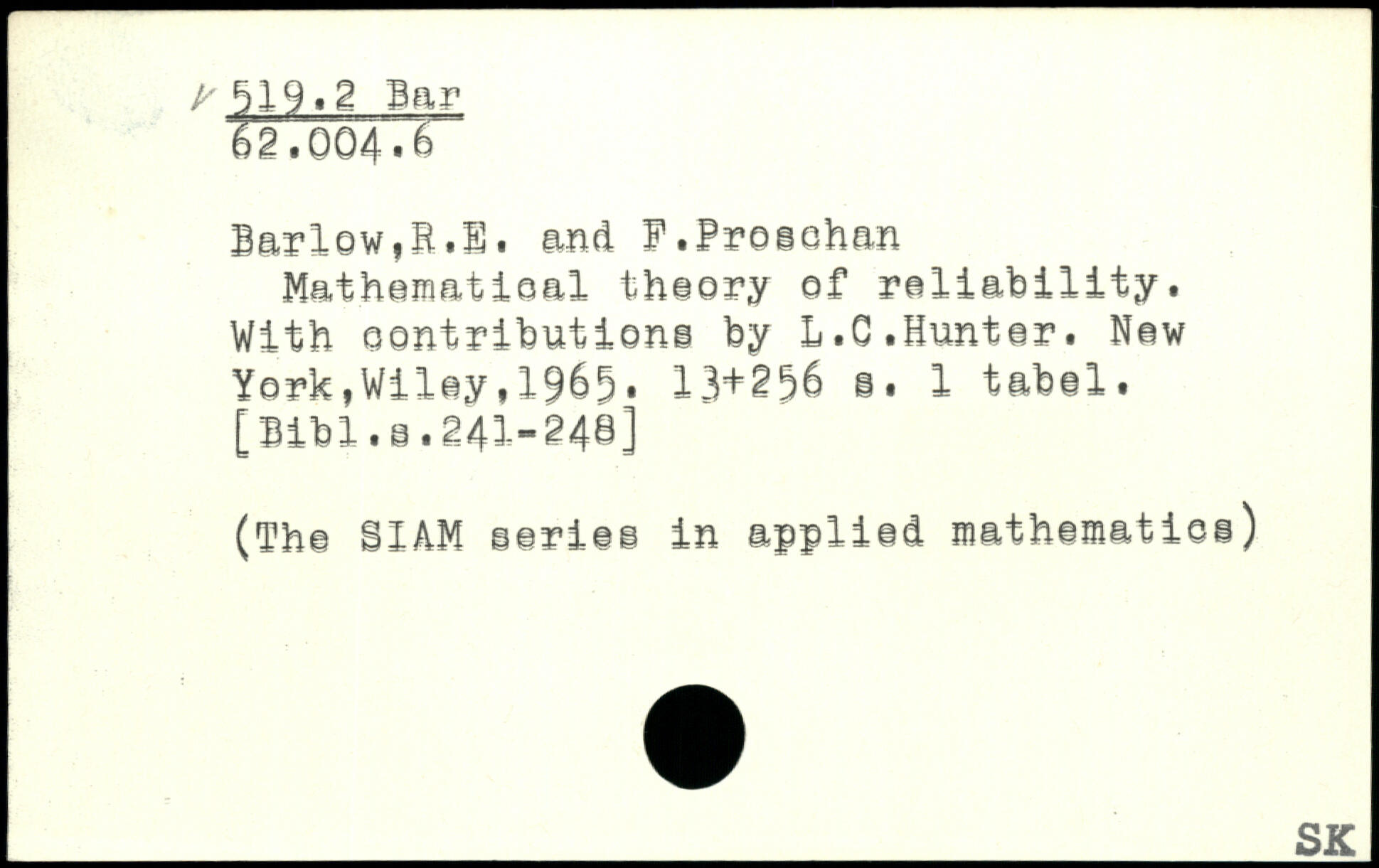 Mathematieal theory of reliability. With oontributiene by L.C.Hunter.