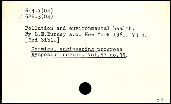 I Pollution and environmental health. By L.E.Burney a.o.