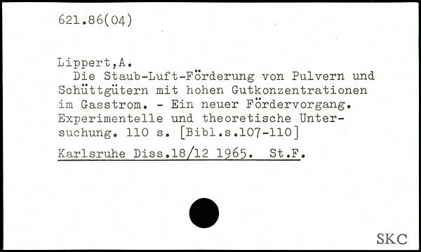 Die Stau!-Luft-Förderung von Pulvern und Schüttgütern mit hohen Gutkonzentrationen im Gasstrom. - Ein neuer Fördervorgang. Experimentelle und theoretische Untersuchung.