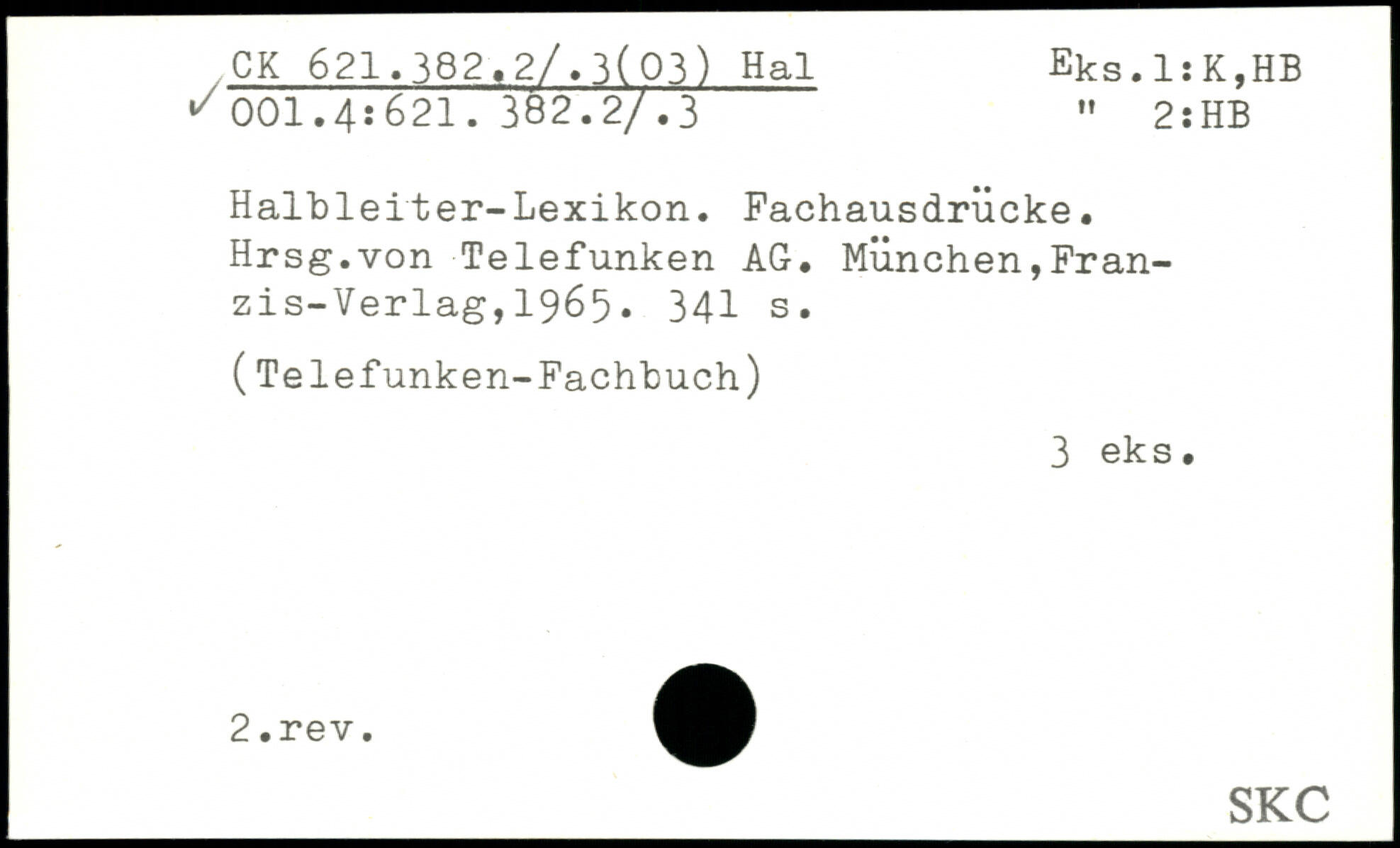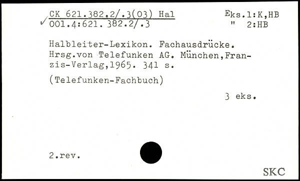 Halbleiter-Lexikon. Fachausdrücke. Hrsg.von Telefunken AG.