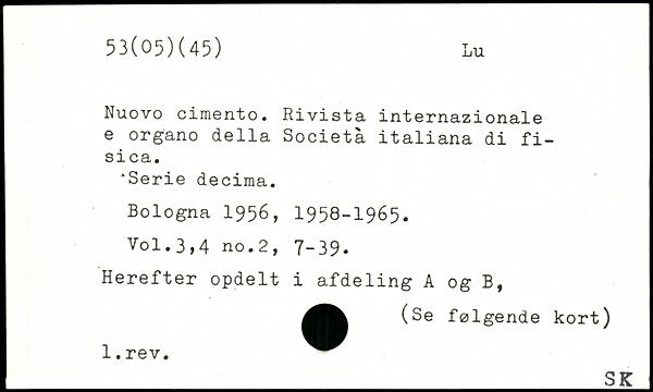 Nuovo cimento. Rivista internazionale e organo della Societa italiana di fi-sica. ‘Serie deciraa. Bologna 1956, 1958-1965.