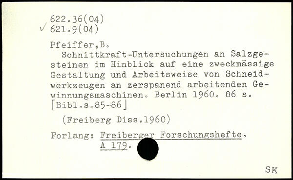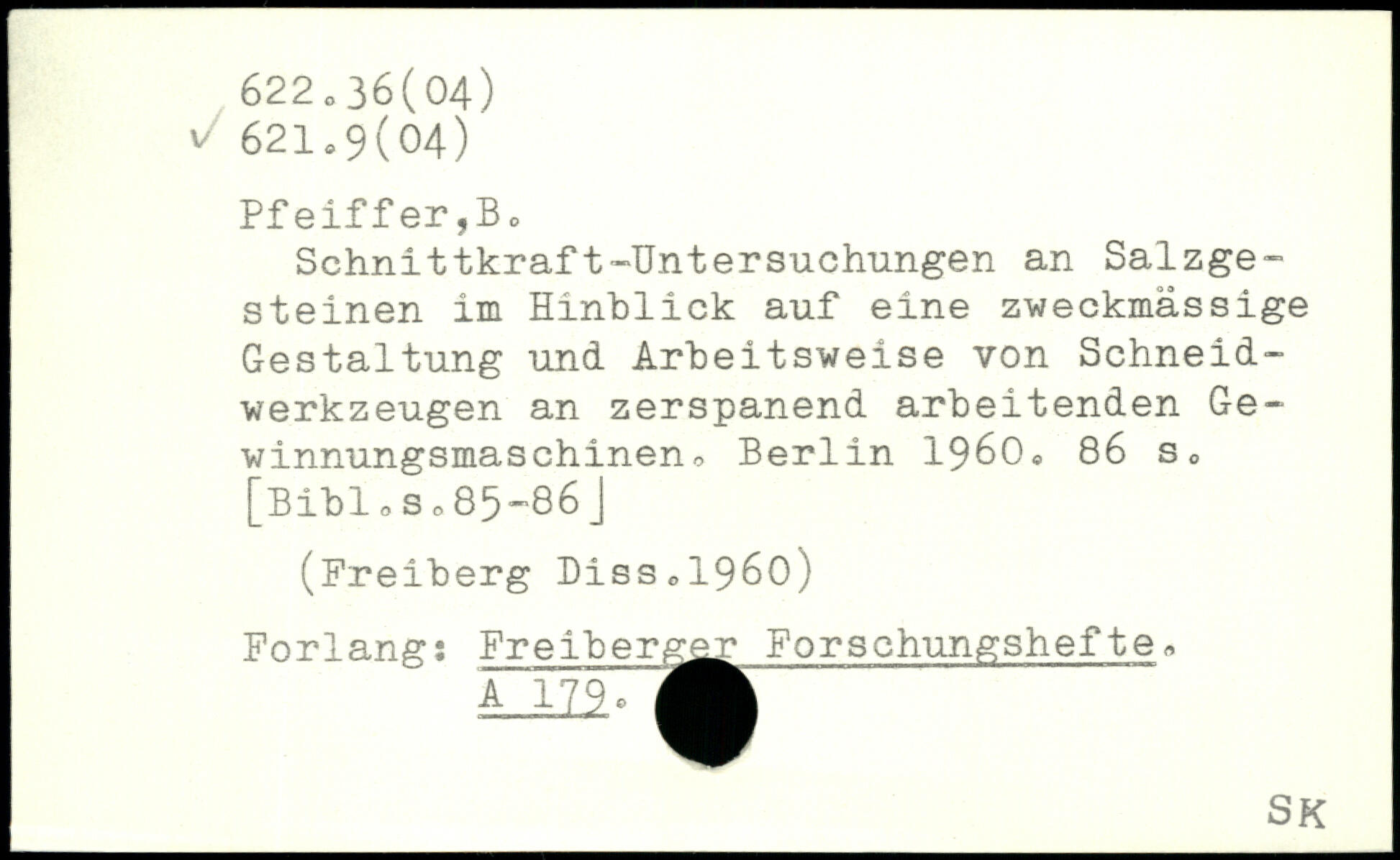 Schnittkraft-Untersuchungen an Salzgesteinen im Hinblick auf eine zweckmässige Gestaltung und Arbeitsweise von Schneidwerkzeugen an zerspanend arbeitenden Gewinnungsmaschineno