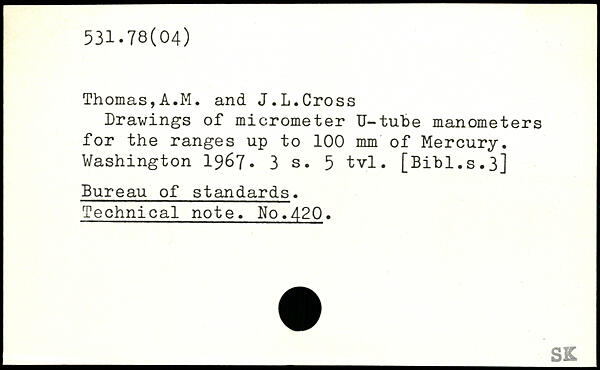 Drawings of micrometer U-tube manometers for the ranges up to 100 mm of Mercury.