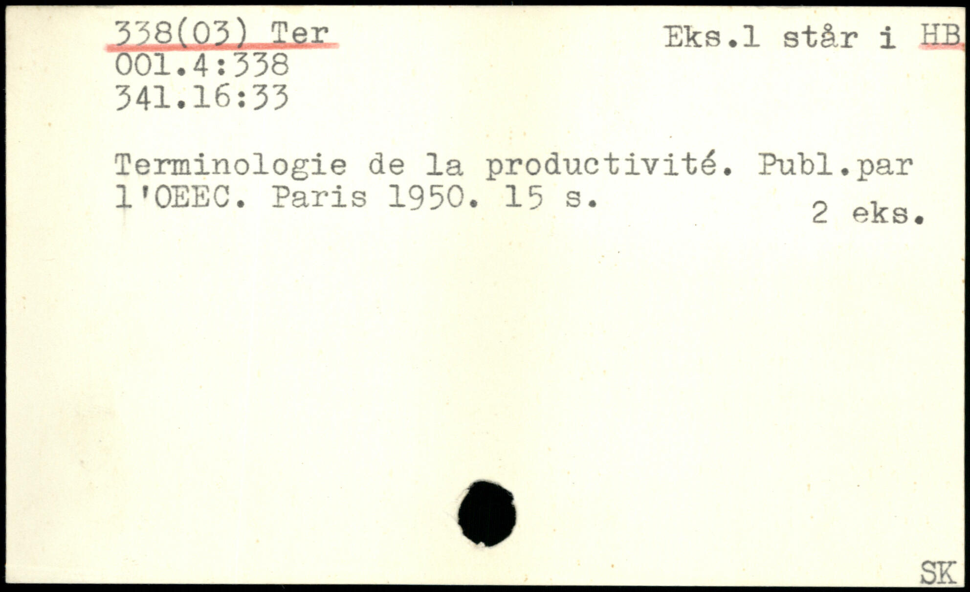 Terminologie de la productivité. Publ.par l'OEEC.