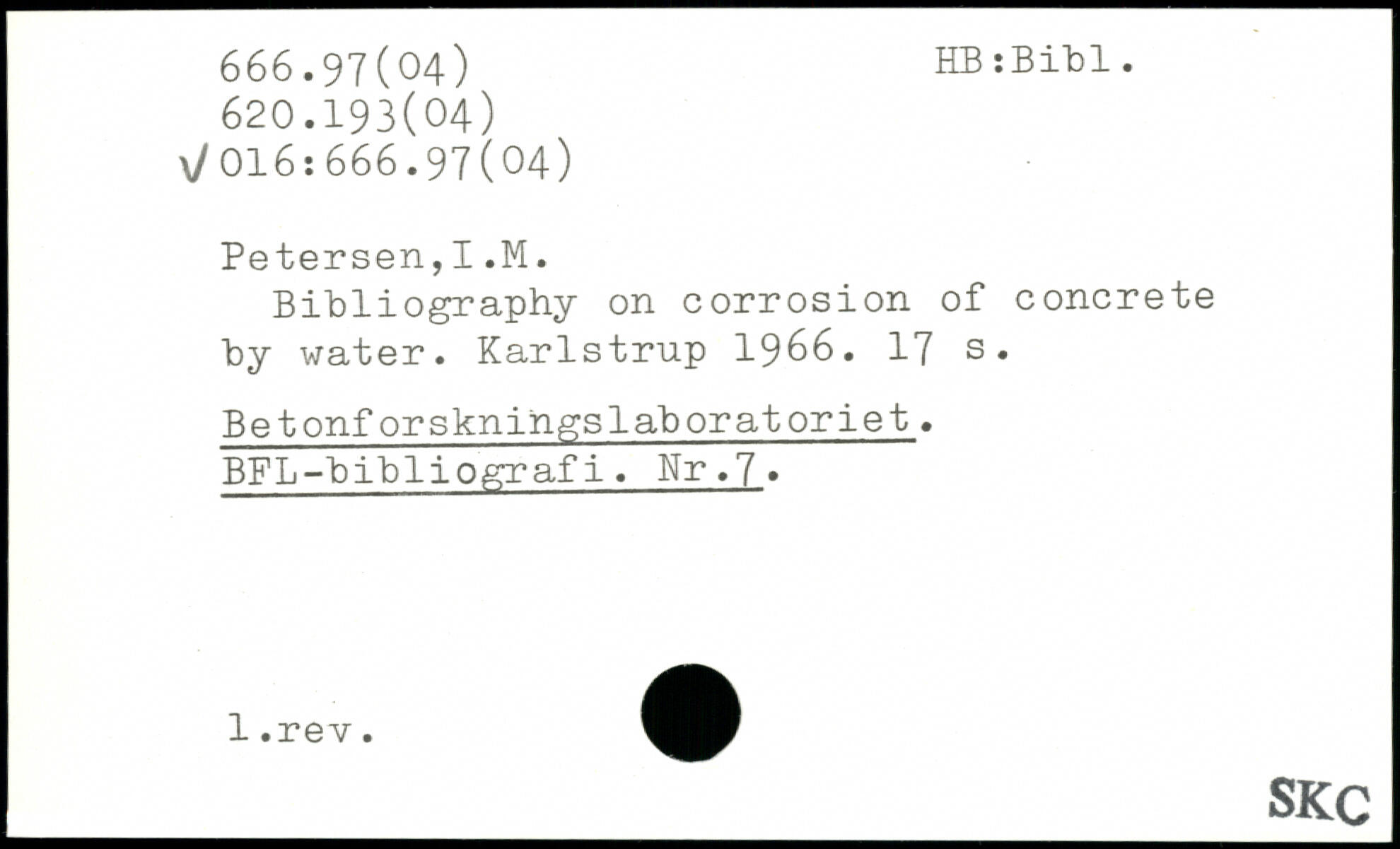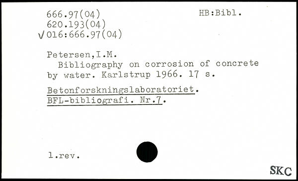 Bibliography on corrosion of concrete by water. Karlstrnp 1966.