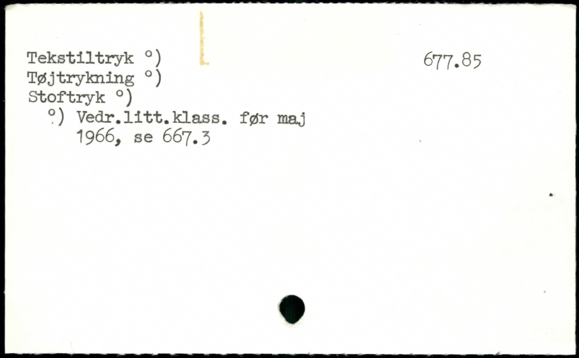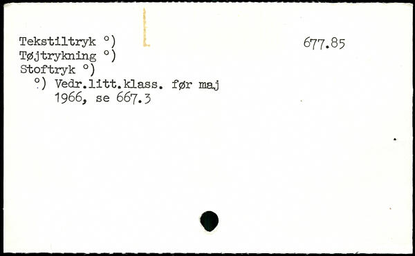 Tøj trykning .) Stoftryk .) .) Vedr.litt.klass. før maj 1966, se 667.5