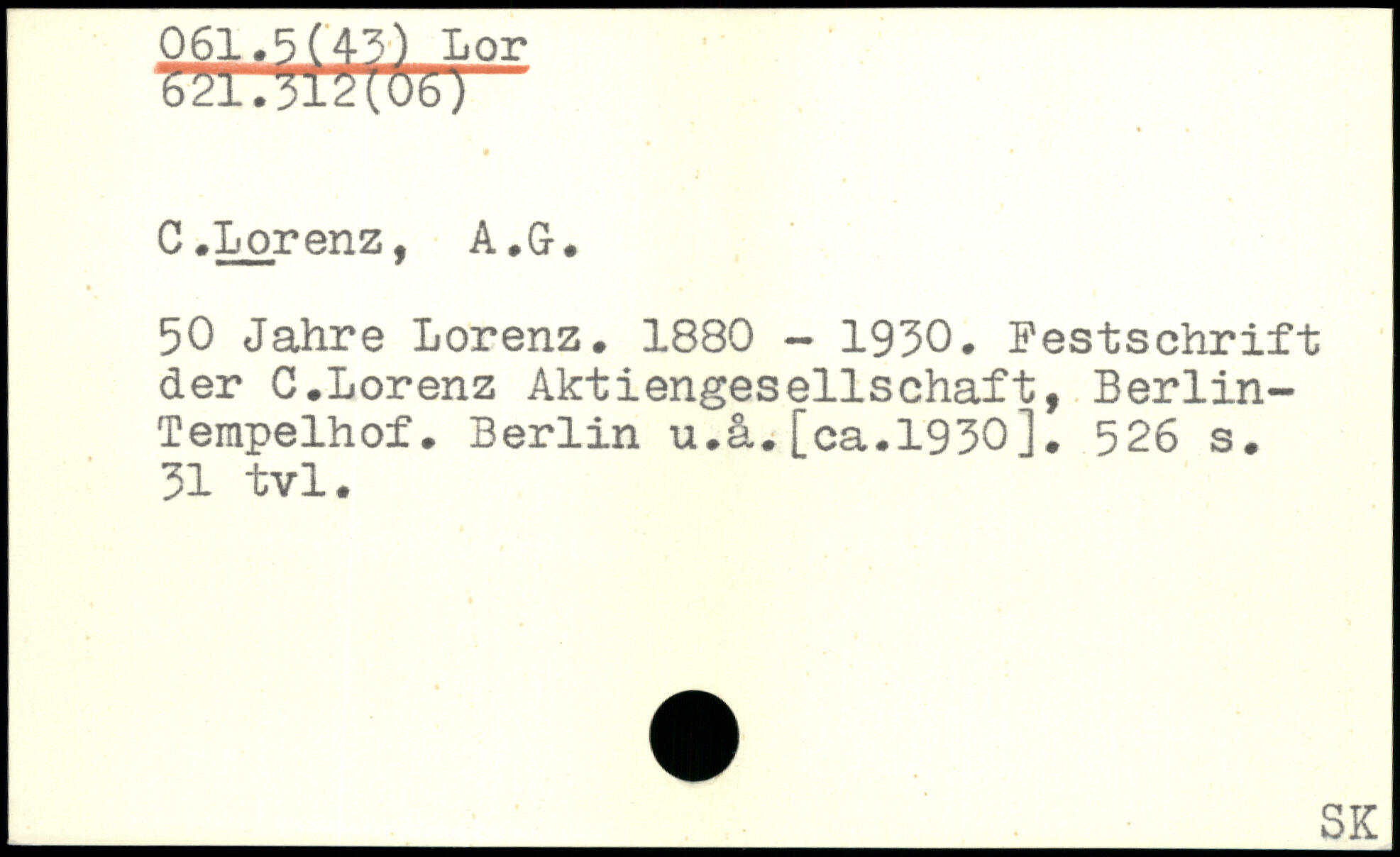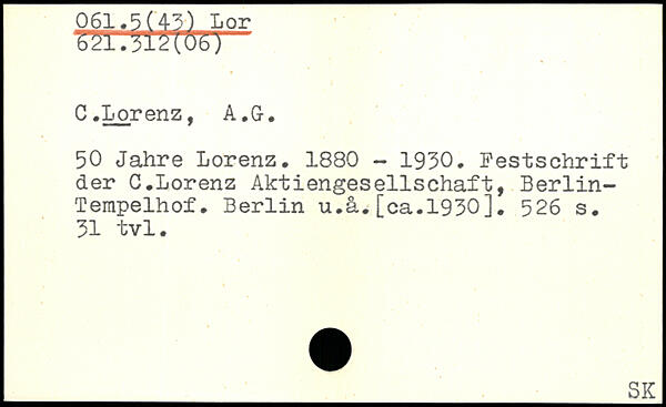 C .Lorenz. A.G. 50 Jahre Lorenz. 1880 - 1930. Festschrift der C.Lorenz Aktiengesellschaft, Berlin-Tempelhof. Berlin u.ä.[ca.1930].