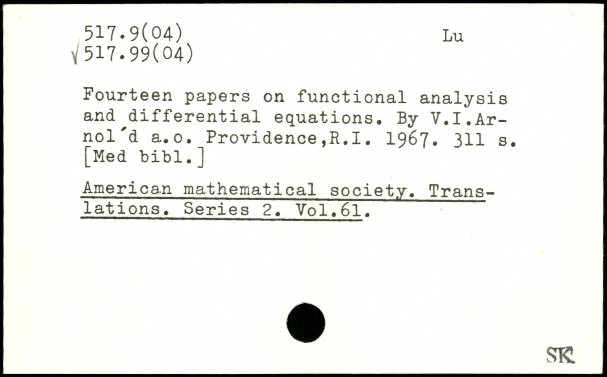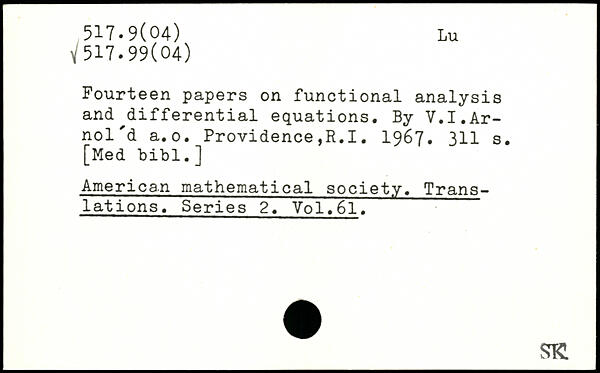 Fourteen papers on functional analysis and differential equations. By V.I.Ar-nol'd a.o. Providence,R.1. 1967.