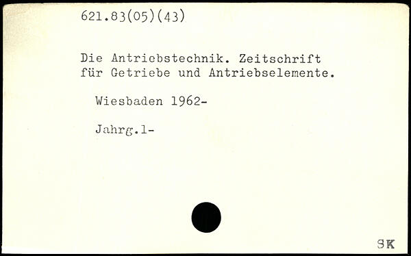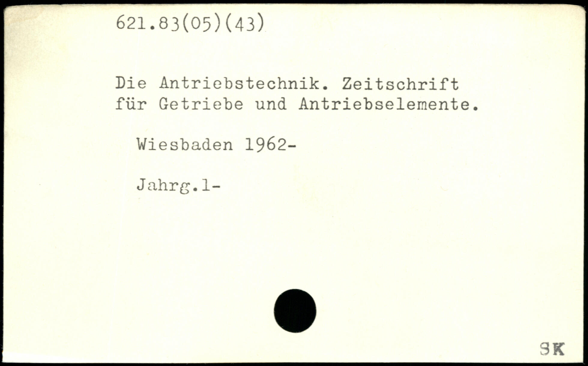 Die Antriebstechnik. Zeitschrift für Getriebe und Antriebselemente. Wiesbaden 1962- Jahrg.1-