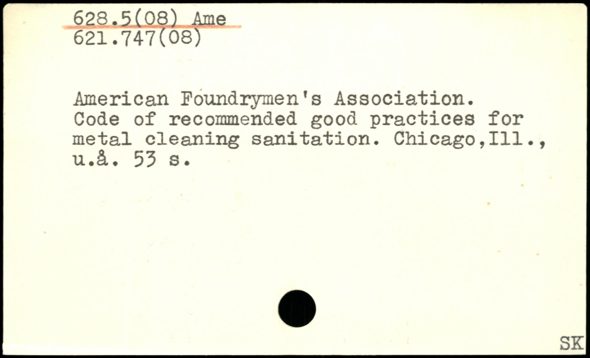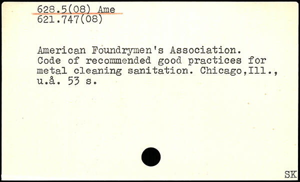 American Foundiymen’s Association. Code of recommended good practices for metal cleaning sanitation. Chicago,111., u.£t.
