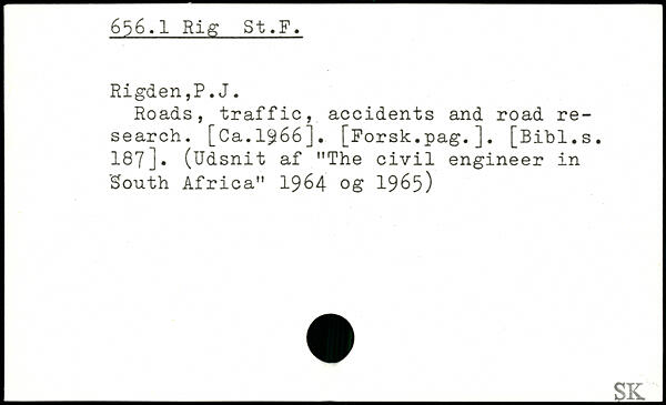 Roads, traffic, accidents and road research. [Ca.1966]. [Forsk.pag.].